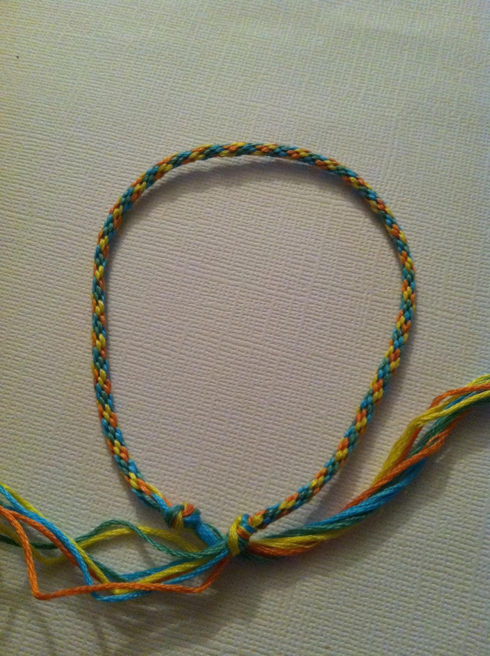 Tie an overhand knot again, tighten both ends. Fix your ends how you'd like. And you're done. So this was how I did mine, I like the pattern better.