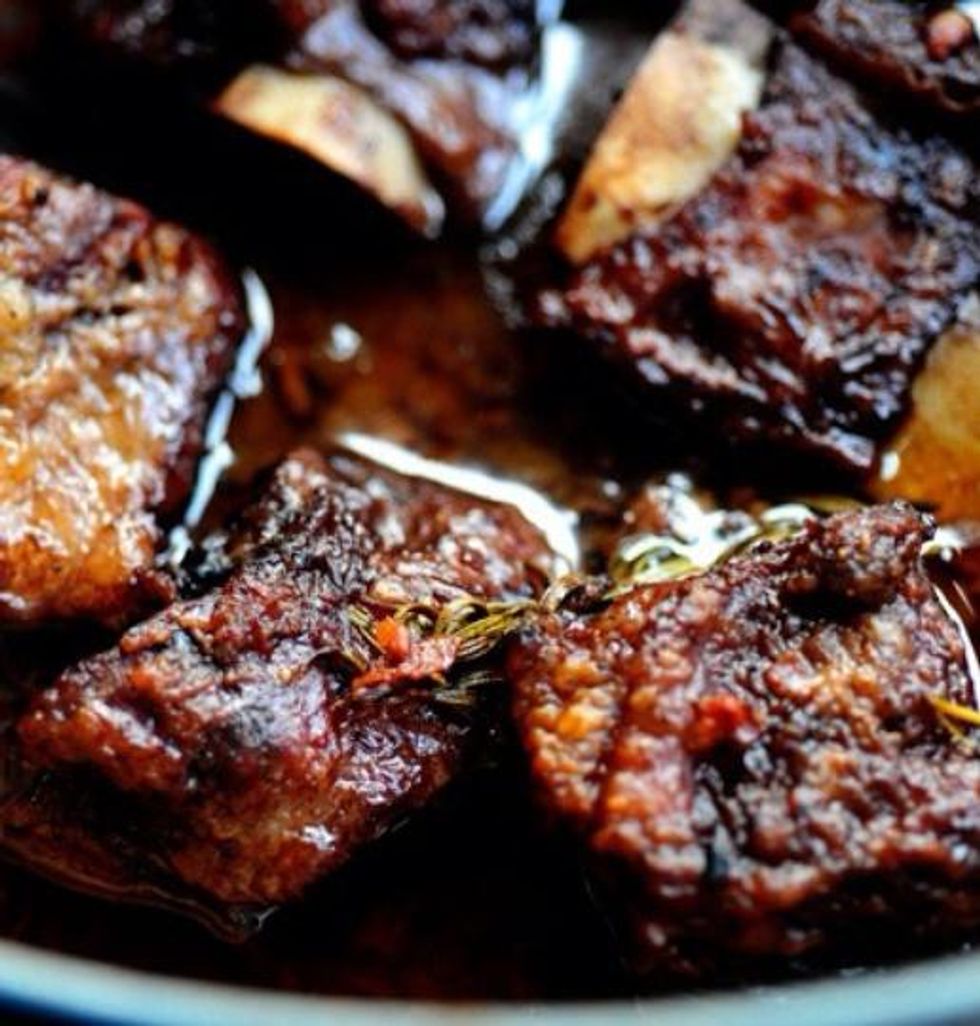 Cover and cook in a per heated alto-Shaam cook & hold oven. Probe one short rib. Cook at 250F (121C), set probe to 170F (77C), hold at 160F (71C).