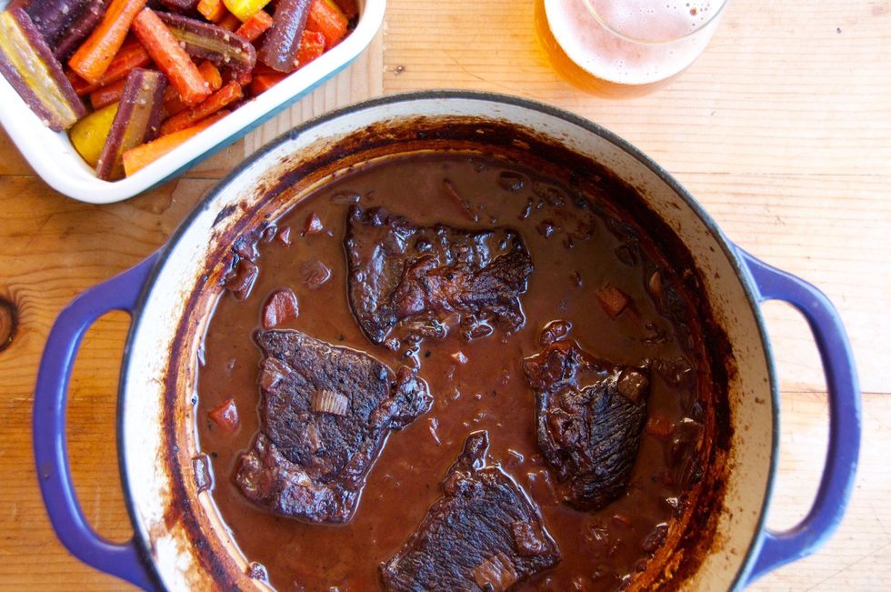 Add 2 TBSP of olive oil to your dutch oven and place over high heat. Make sure the oil is hot enough to hear a sizzle when you brown the rib meat. Cook 3-5 minutes per side until well browned...