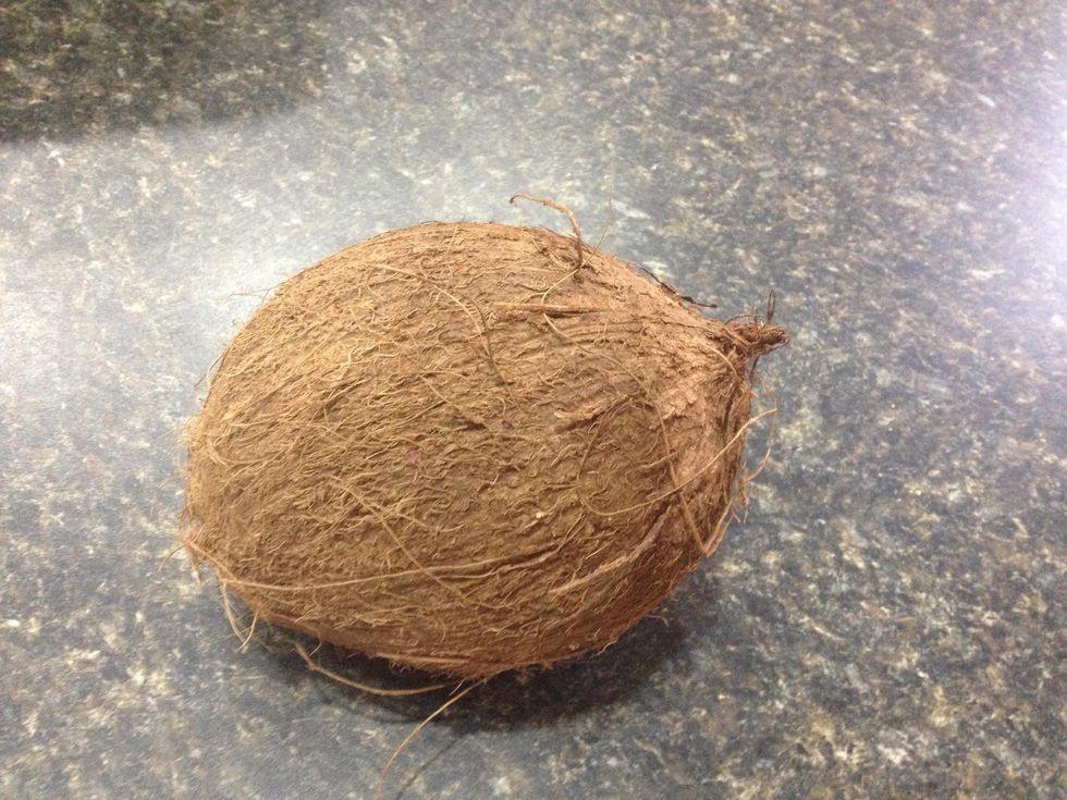 I threw the coconut on ground to break it into pieces.Soak the pieces into water.Put it in microwave for 5 minutes.This is how it looks after 5 minutes.With knife you can uproot it from its shell.Very easy.