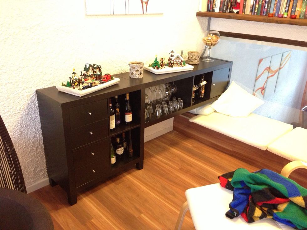 We finally added a countertop to the bar - just like we did with our Besta TV rack on the other side of the living room.