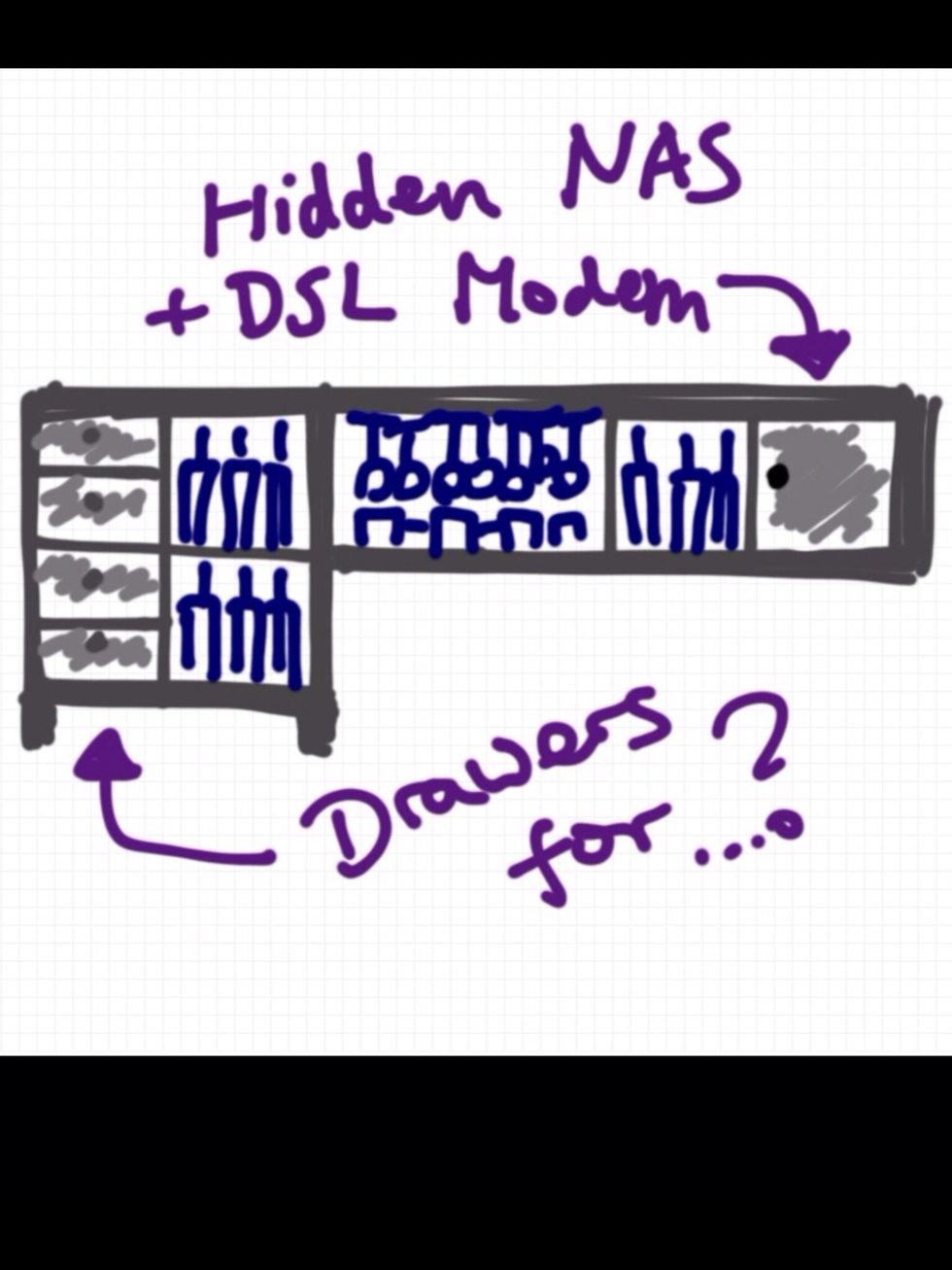 You need from IKEA: Expedit 2x2 & 1x5 shelves and Expedit drawers & doors.