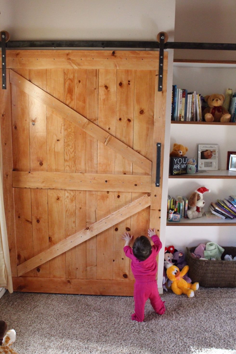 Viola! Your own barn door, just heavy enough to keep the little one out, but...