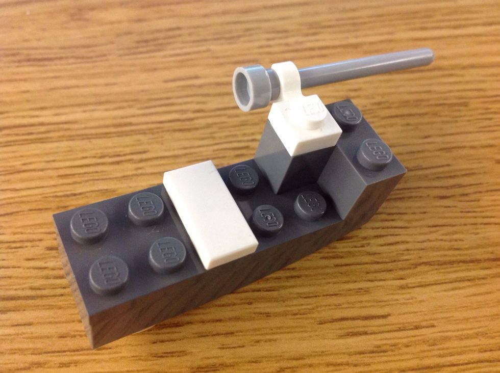 Connect a 3 stud L piece, a 1x1 piece, and binoculars on the piece to secure the connection you just made.