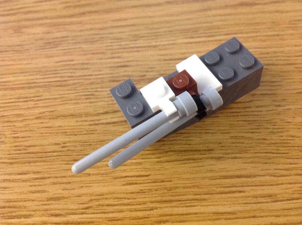 Now, take a 1x2 with holes in the side and put these pieces in it.