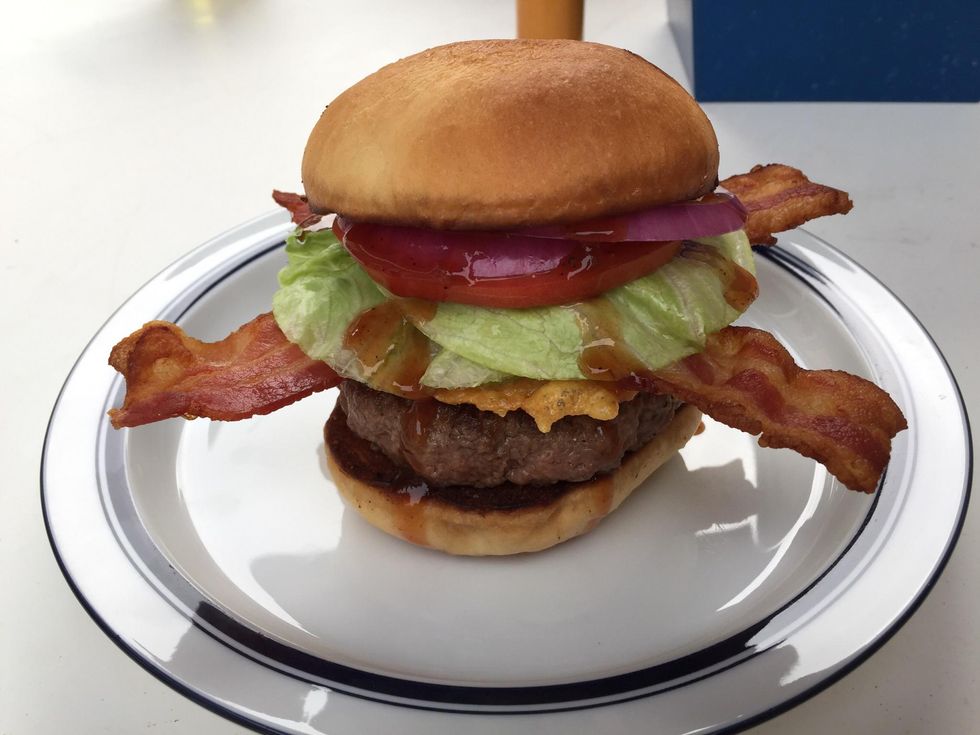 Put lettuce, tomato, red onion on bacon and salt and pepper to taste