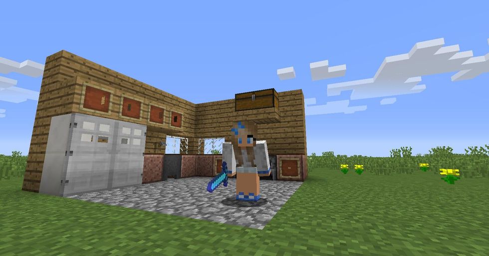 If you have higher ceilings, you may choose to have shelves. Do this by placing slabs with chests on top.