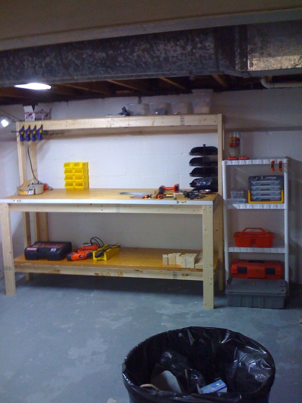 I overlapped the top shelf to compensate for the basement foundation. This way my table would go square up against the wall.