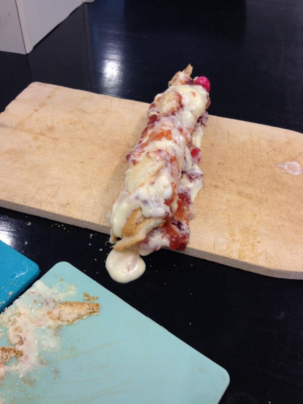 Kridt fra kridtiden (første lag)Vi pisker kagecreme, som er tertiært sandgrusVi putter det tertiære sandgrus påSå putter vi tertiæt lerSå putter vi vandreblokke påDer dannes lag, ligesom på møns klint