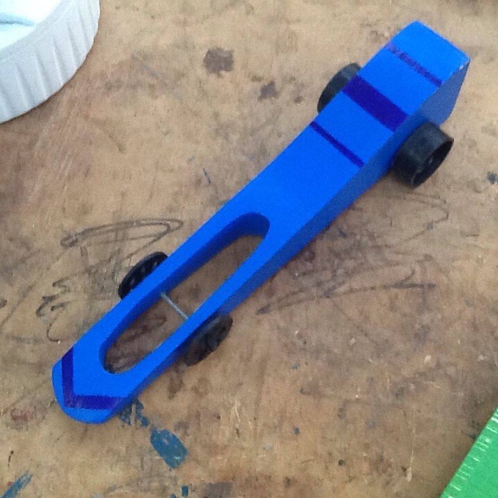 Glue the wheels onto the axel and screw eyelets into the bottom of the car (they will lead the car when racing)