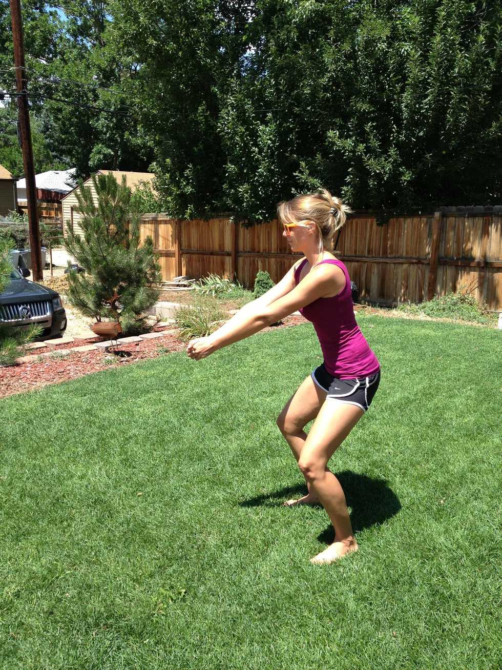 Step 1: Stand with your feet about shoulder-width apart with your knees bent.