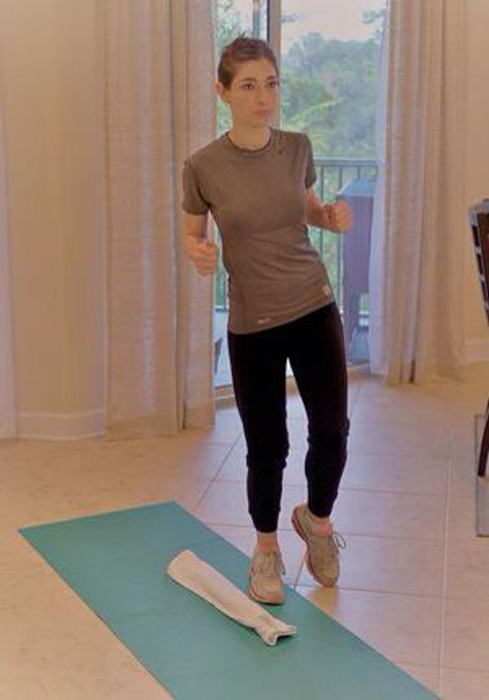 7) Place a towel on the ground and jump from one side to the other keeping your feet together. Do this for one minute then, go on to your cool down.
