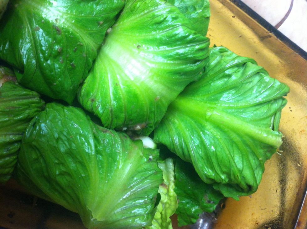 Layering: On the bottom, lay the lettuce, then one zucchini strip. Using a conservative amount of the paste, spread it even onto the zucchini.