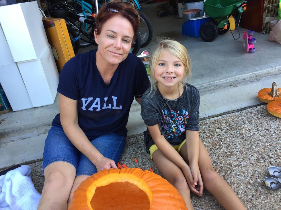 After the pumpkin seeds are removed, tape a spooky picture on the pumpkin.