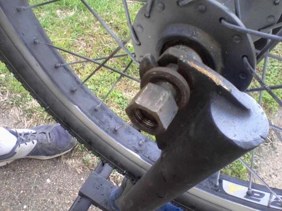 Now you are done taking off the washers and lug nuts now you are able to take off the bike tire off both sides of the forks.