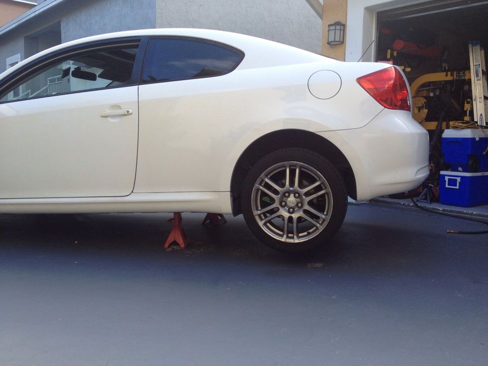 Hand tighten the top bolt first, then alight the bottom, then tighten both and put the wheel back on. Repeat the same steps for the other side. Total time took 30 min