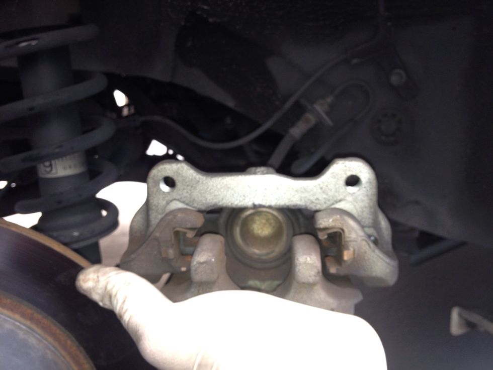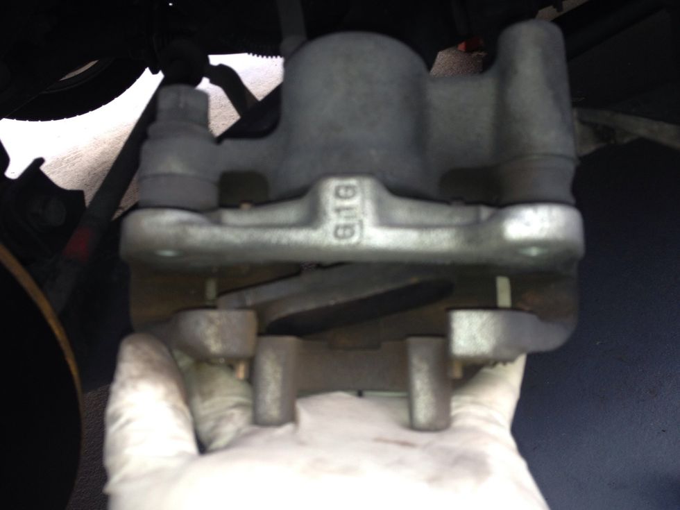 On the back of the caliper, there are 2 14mm bolts, loosen them to remove the caliper
