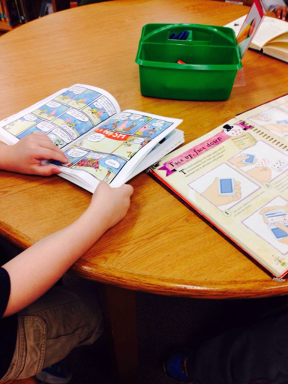 3. You may browse the shelves to look for a good fit book. Place your shelf marker next to a book that looks good to you, and take the book off the shelf.