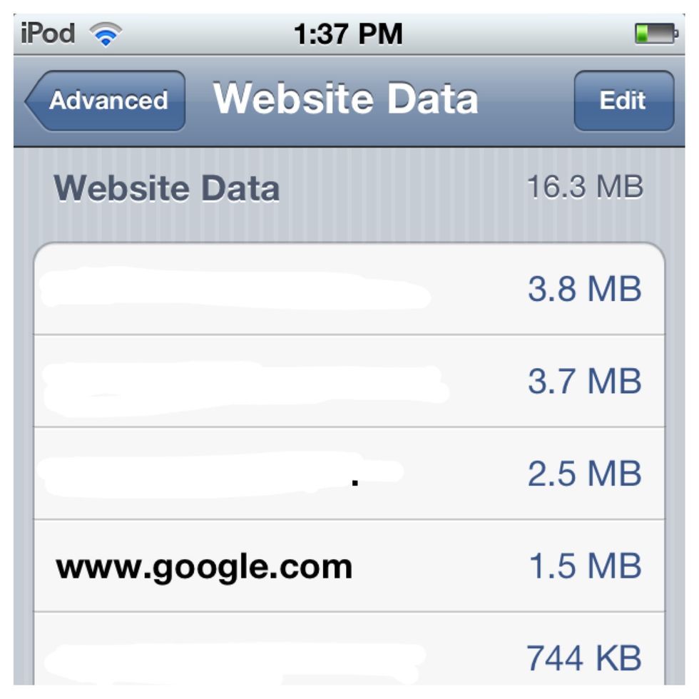 Go to settings.Tap Safari.Scroll down to 'advanced'.Click 'website data' . Here you will find website data. All the past sites you have been to. And how much data it was.