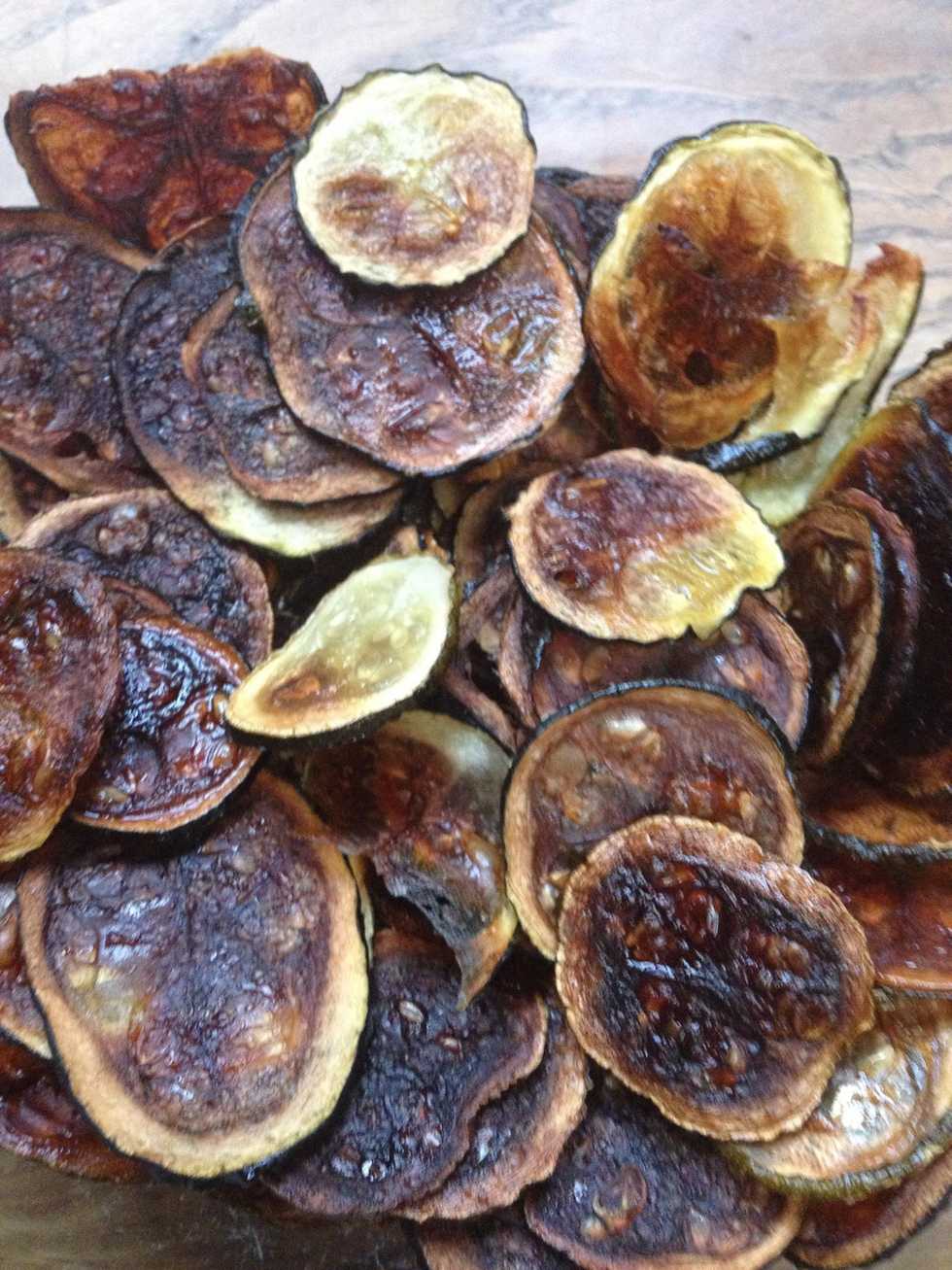 Enfournez 2 heures à 100°C (les chips commencent à dorer et sont croquants). Laissez refroidir pour servir. Ces chips se conservent 3 jours dans une boite hermétique.