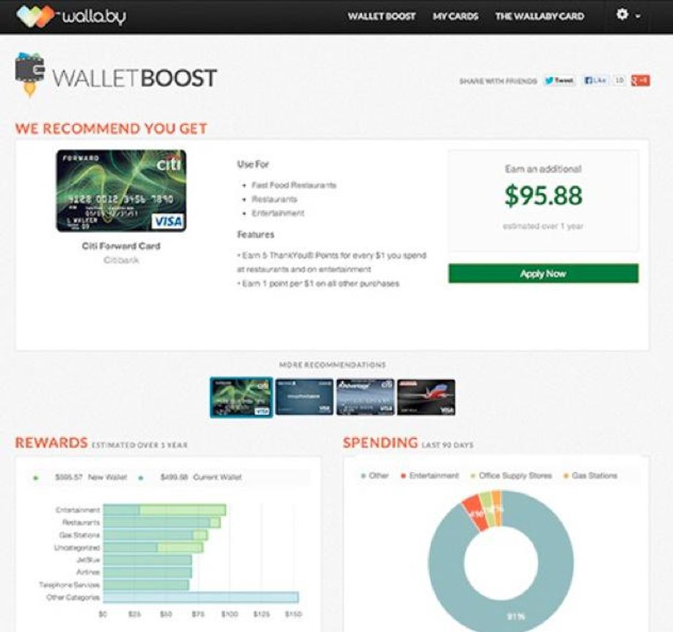Get credit card recommendations, see where your spending goes, and see the rewards of other cards in your wallet. Best of all, it's free. Check it out at www.walla.by/boost
