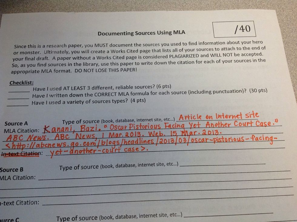 Have your citation guide and source sheet out.