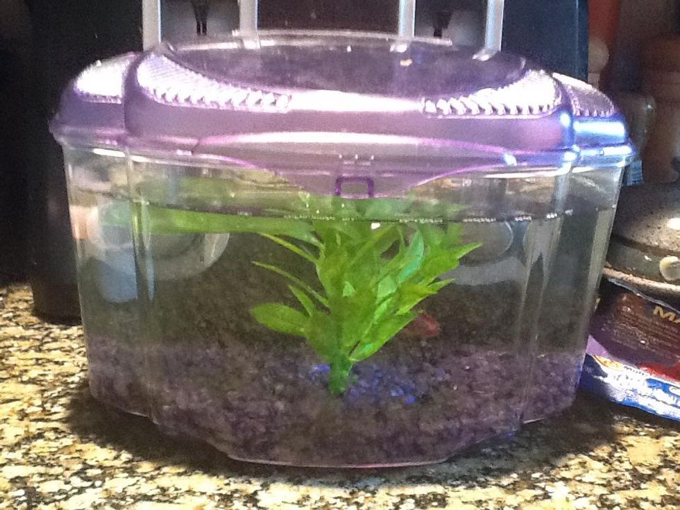 Add room temperature water only filling up a little more then half because we will add the water from which the fish is in right now