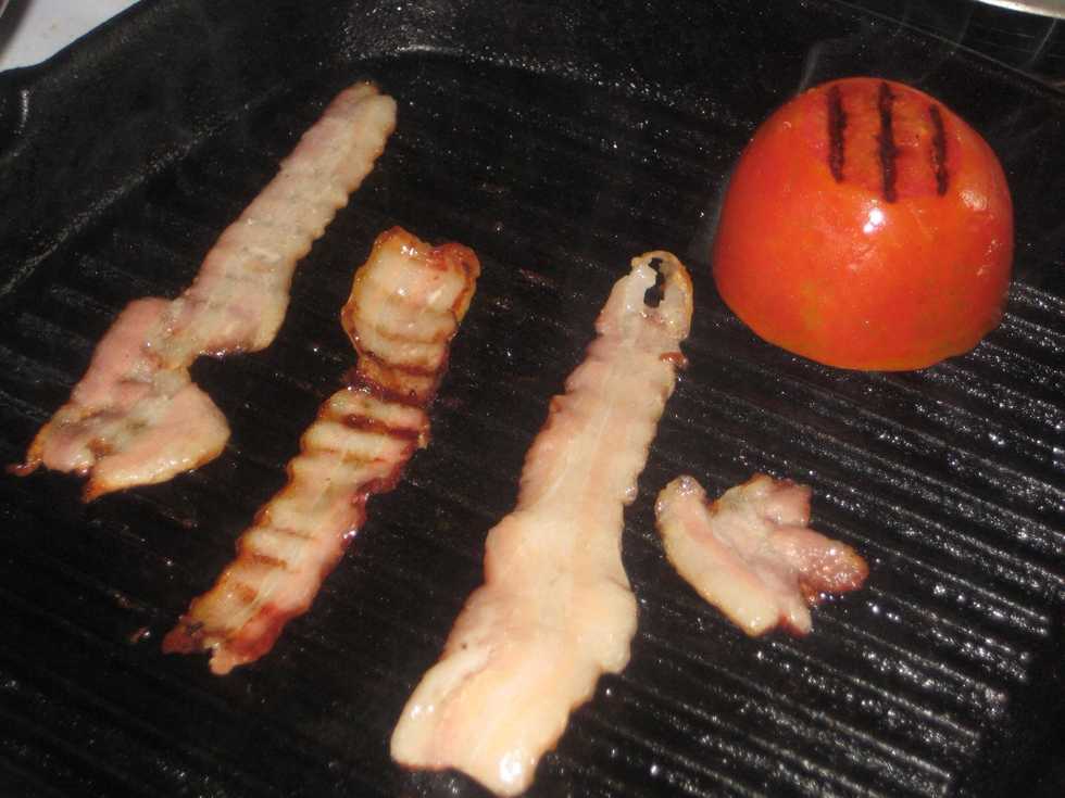 After cooking meat and left with a dirty, greasy grill pan......drain off the excess grease and allow it to be hot if it was already cold.
