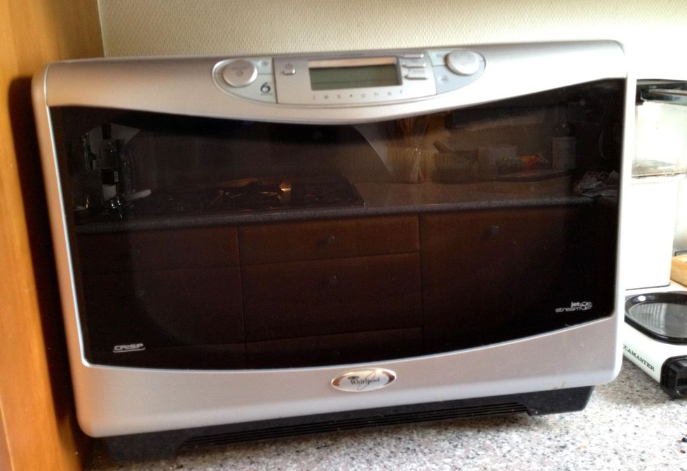 I wanted to bake a rhubarb marzipan pie, but my regular oven was busy So I turned to my microwave/hot air oven I don't use it very much, but my husband uses it a lot. Nice and clean out side.