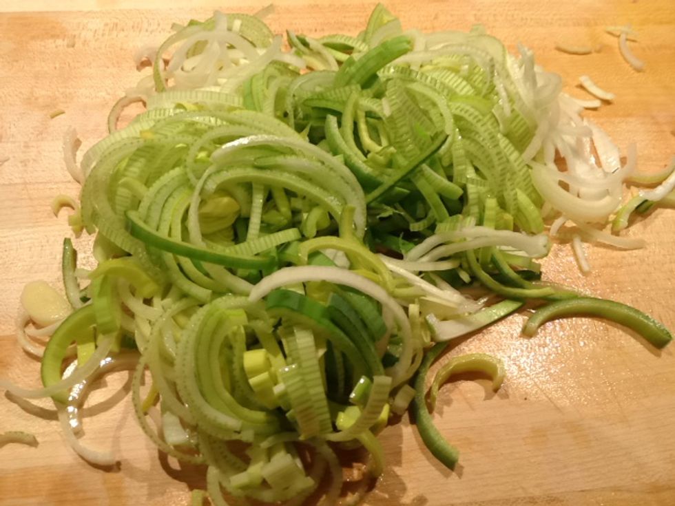 Now let's slice the leeks!