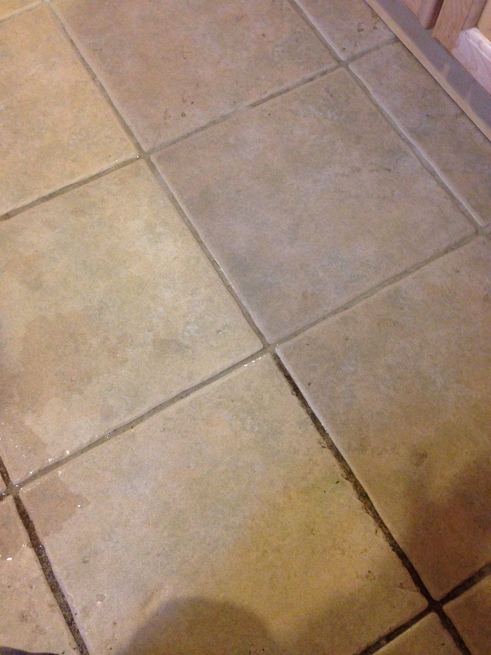 With a tooth brush scrub the grout lines. Peroxide action makes the dirt come out faster.
