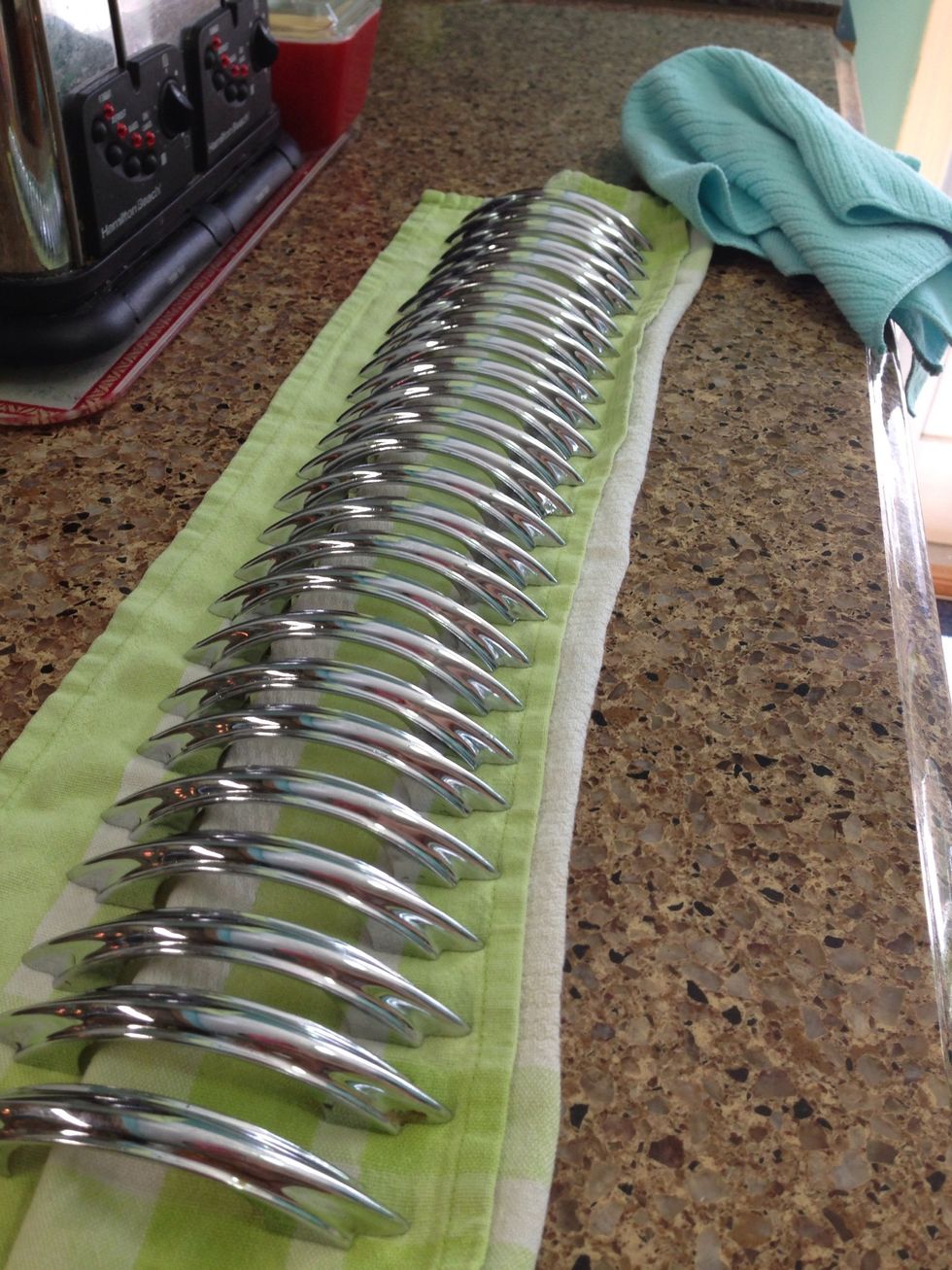 After they were rinsed, I used a microfiber towel to dry them and then I placed them all one by one on an absorbent towel to dry. (Like how I used towels that match my retro color scheme)?