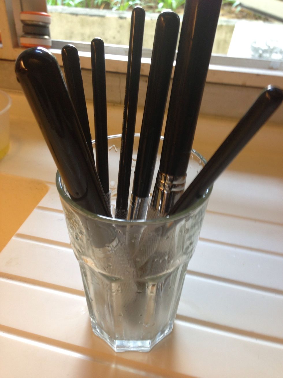 Clean the brush over COLD running water...you may repeat with the detergent again for those heavy duty brush like concealer or eye liner brush. It is considered clean when the running water is clean