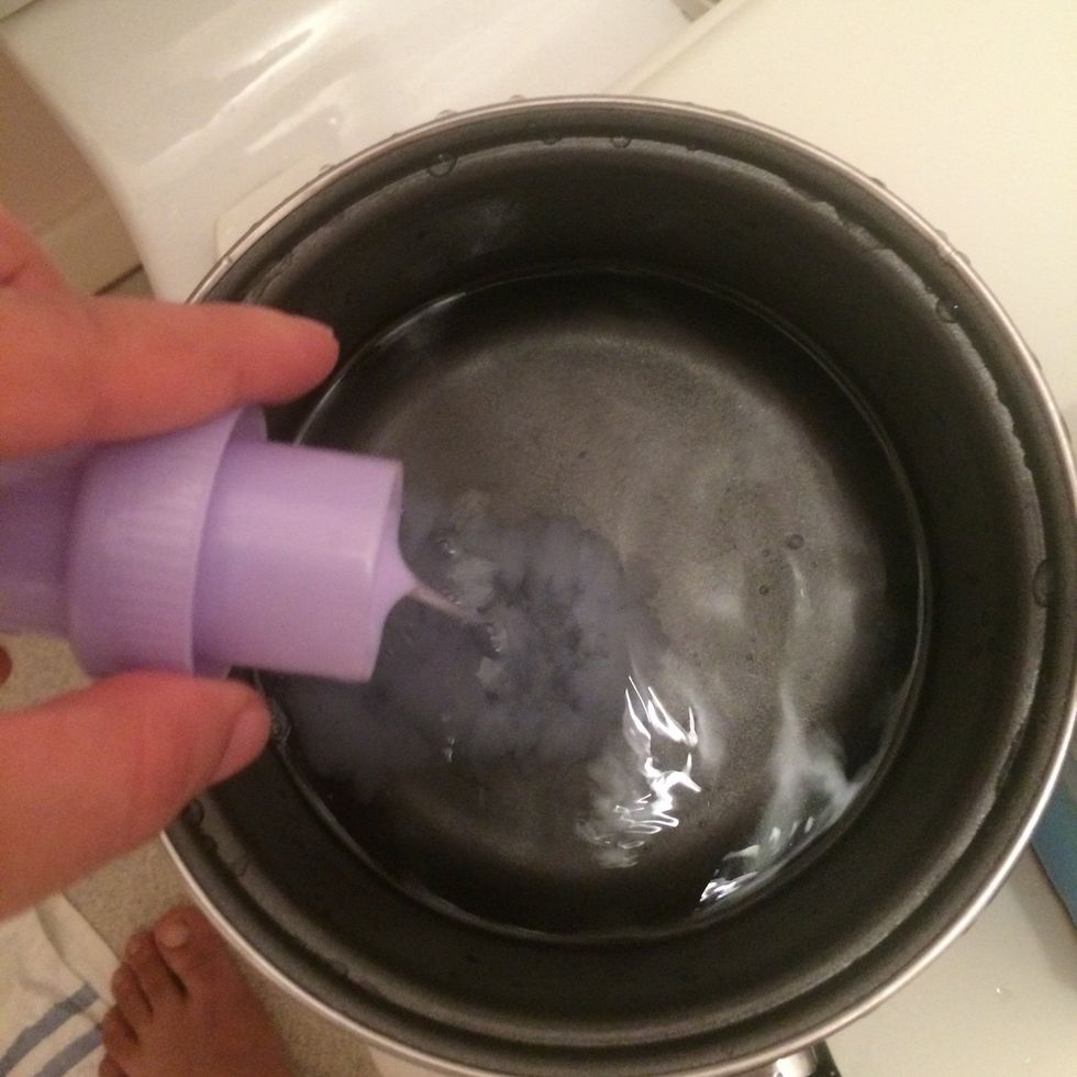 Now, after you've washed the fabric, get some fabric softener, and place a tiny amount in some fresh water.