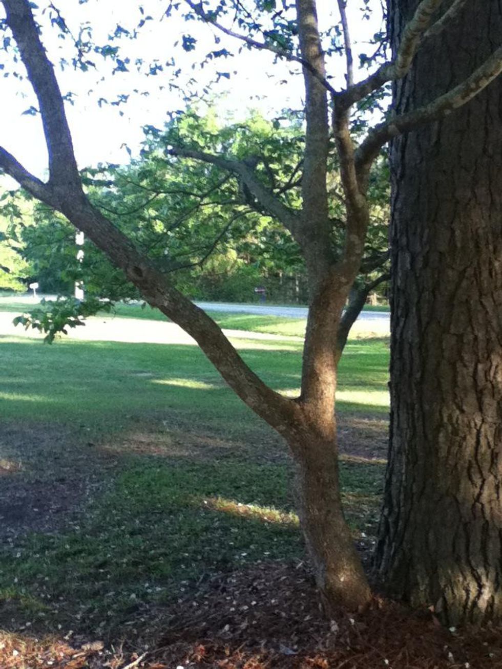 Find a small tree with a lot of limbsHave tenishoes os something with a rough bottomPut your foot on the lowest branch.Pull yourself up
