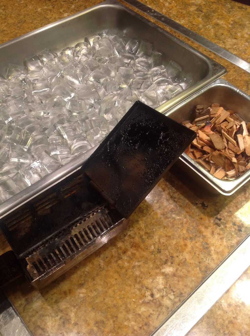 Place wet chips into smoke boxPlace smoke box into oven with ice pan directly aboveHold smoke button for 5 sec. To turn off heat. Set a smoke (burn) timePress start