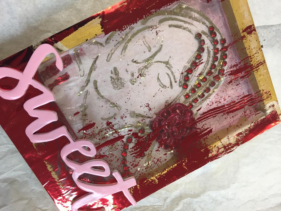 I wanted more depth so I recycled an almost empty piece of red foil over the frame of my tray