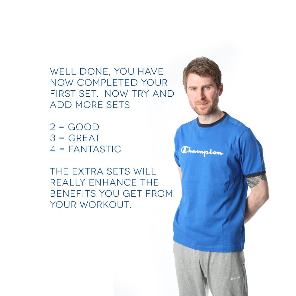 Back extension - For back strengthening, lie on your front with your hands to your temples. Raise your back up, and back to the floor. Repeat this 12 times
