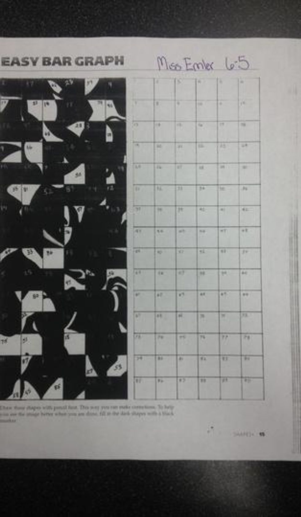 Boxes 4,5, and 6 were easy they were all shaded in! Make sure you have a watchful eye on box #3 it has a small sliver of white for you to draw!