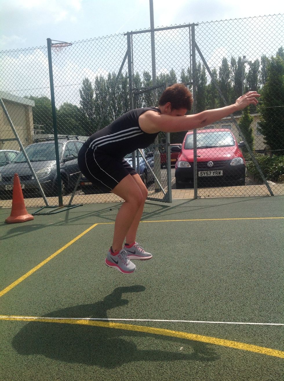 To generate momentum, the participant should swing their arms behind them and bend their knees.... They can do this a maximum of 3 times.
