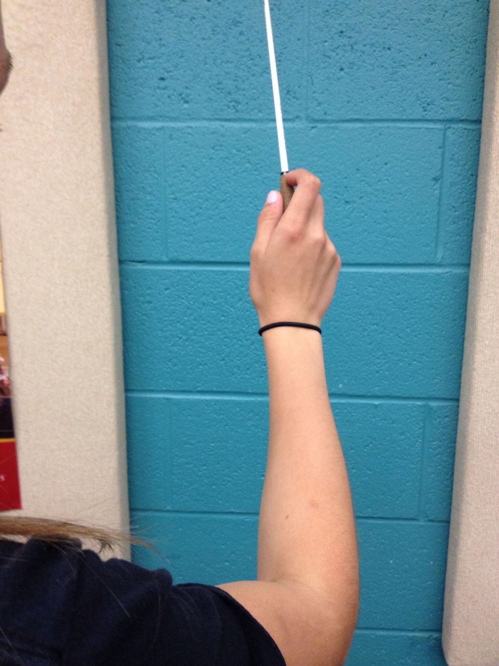 Swoop your hand up and slightly to the left so that it is vertically above your starting position. Make a downward motion to starting position and repeat the process.