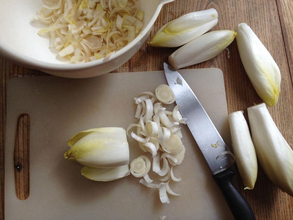 Faites suer les endives dans le beurre, puis ajoutez la vergeoise.