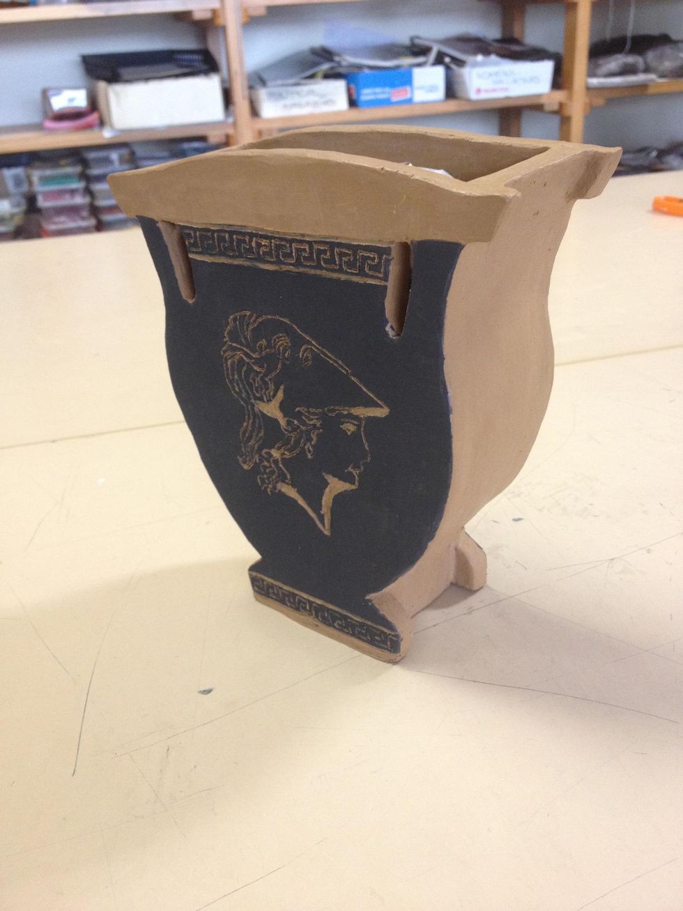 The finished design should be copied to both sides. Pictured ready to underglaze.