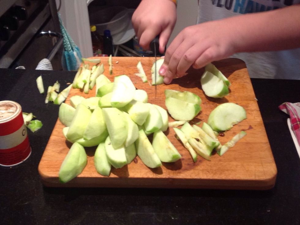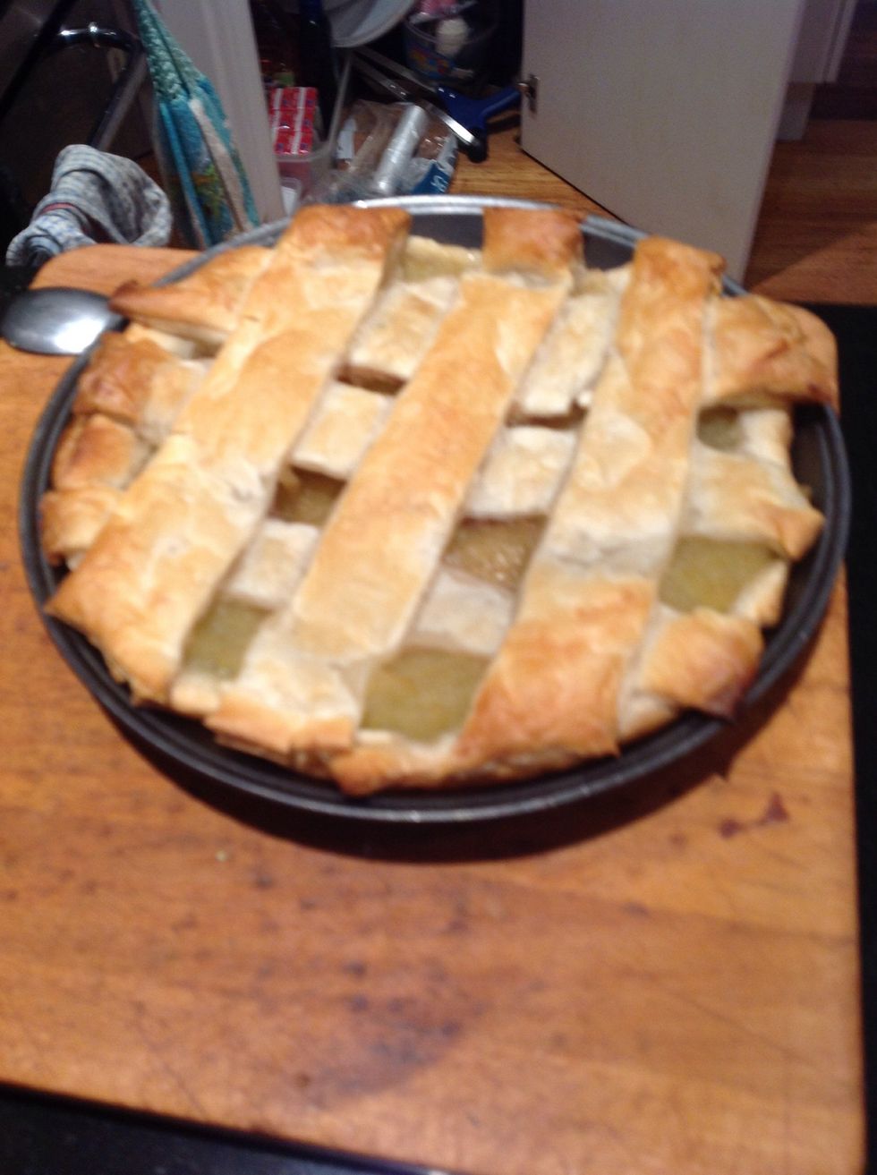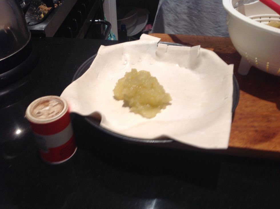 Let it cool and drain then put pastry in a rounded tray then put your apples on top of the pastry