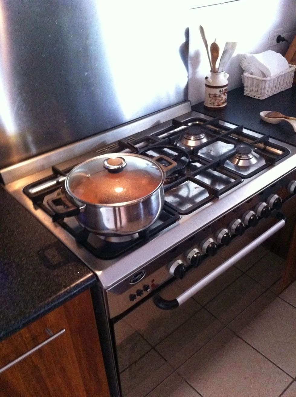 Stir well. Cover pan and simmer on a very low heat for about 2 hours.