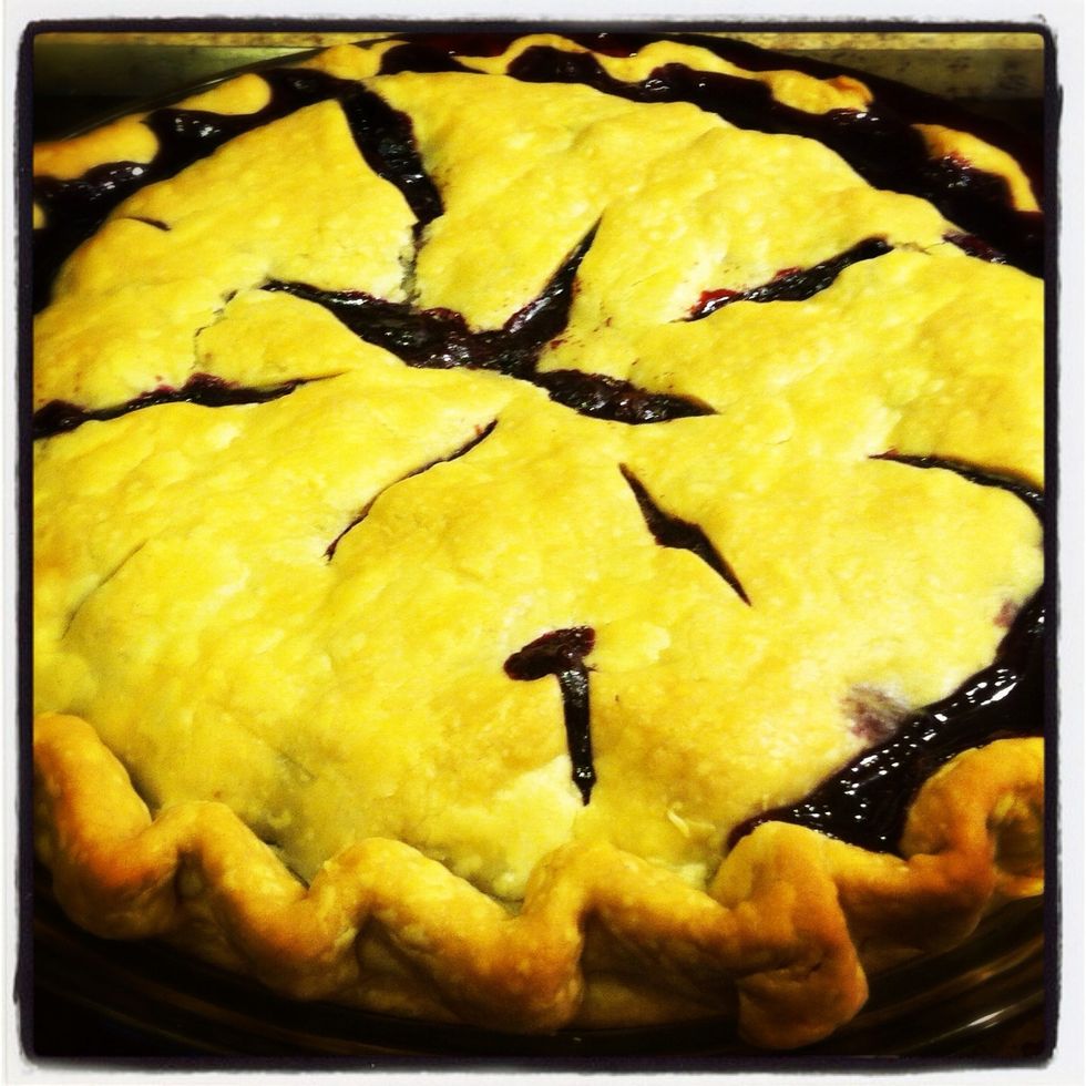 Watch the pie closely. As you can see, my berries boiled over, Making a MESS in the oven. Cool pie for an hour +. Enjoy!