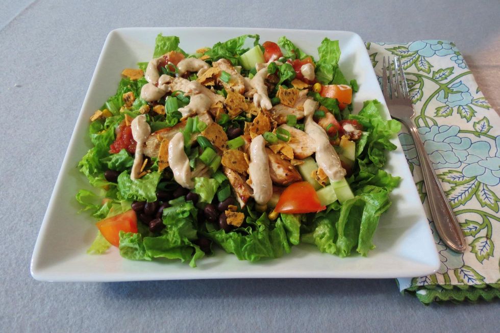First put lettuce all around the platePut tomatoes on the plateAdd chicken on topYou are done enjoy it