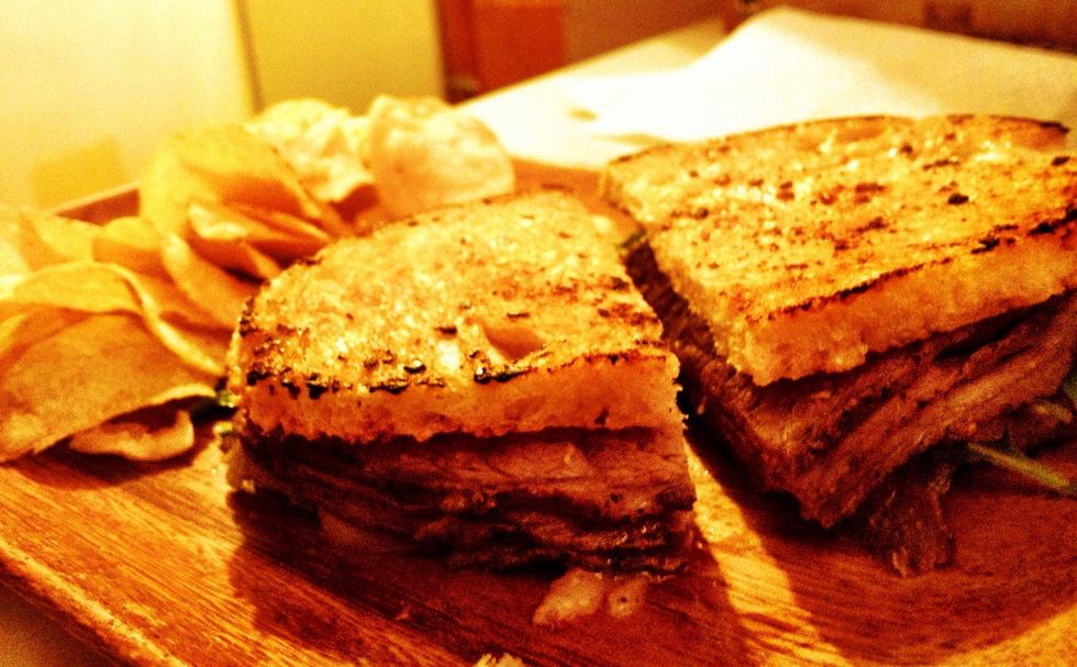 Plate the sandwich and garnish with some chips or French fries! Enjoy!