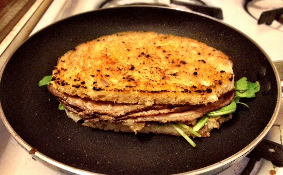 Return the sandwich to the pan and cook on each side until a dark crispy golden brown.