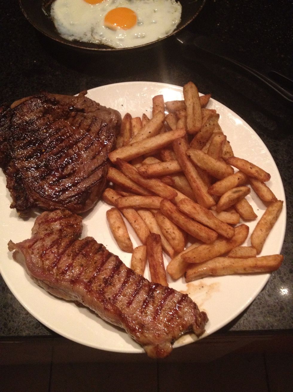 Cooking times for a steak 1.5-2cm thick: Blue : 1-2 minutes each side Rare: 3-4 minutes each side Medium: 4-6 minutes each side Well done: 6 minutes each side then reduce the heat to finish cooking